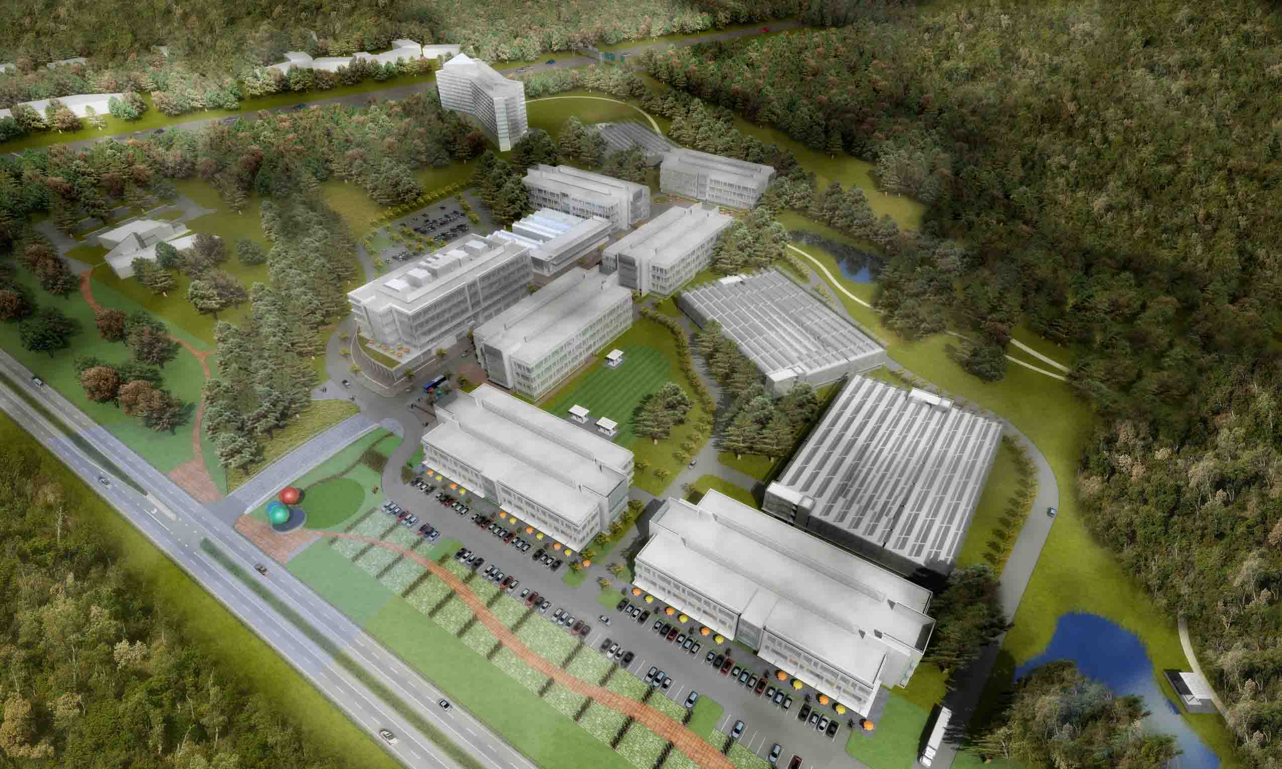 Alexandria Real Estate Equities, Inc. (ARE), a leading REIT uniquely focused on collaborative science and technology campuses, proposed the development of a first-of-its-kind campus in the RTP area, located at 6 Davis Drive. Leveraging the property then occupied by a research institute, this proposed hub for the intersection of science, technology and agriculture, will expand the existing campus assets and add newly designed multi-tenant lab facilities and a multi-tenant research greenhouse (AgTech Accelerator for the AgBio sector.) The project was taken from design through construction documents by the design-build team of Shelco Inc. and O’Brien Atkins.