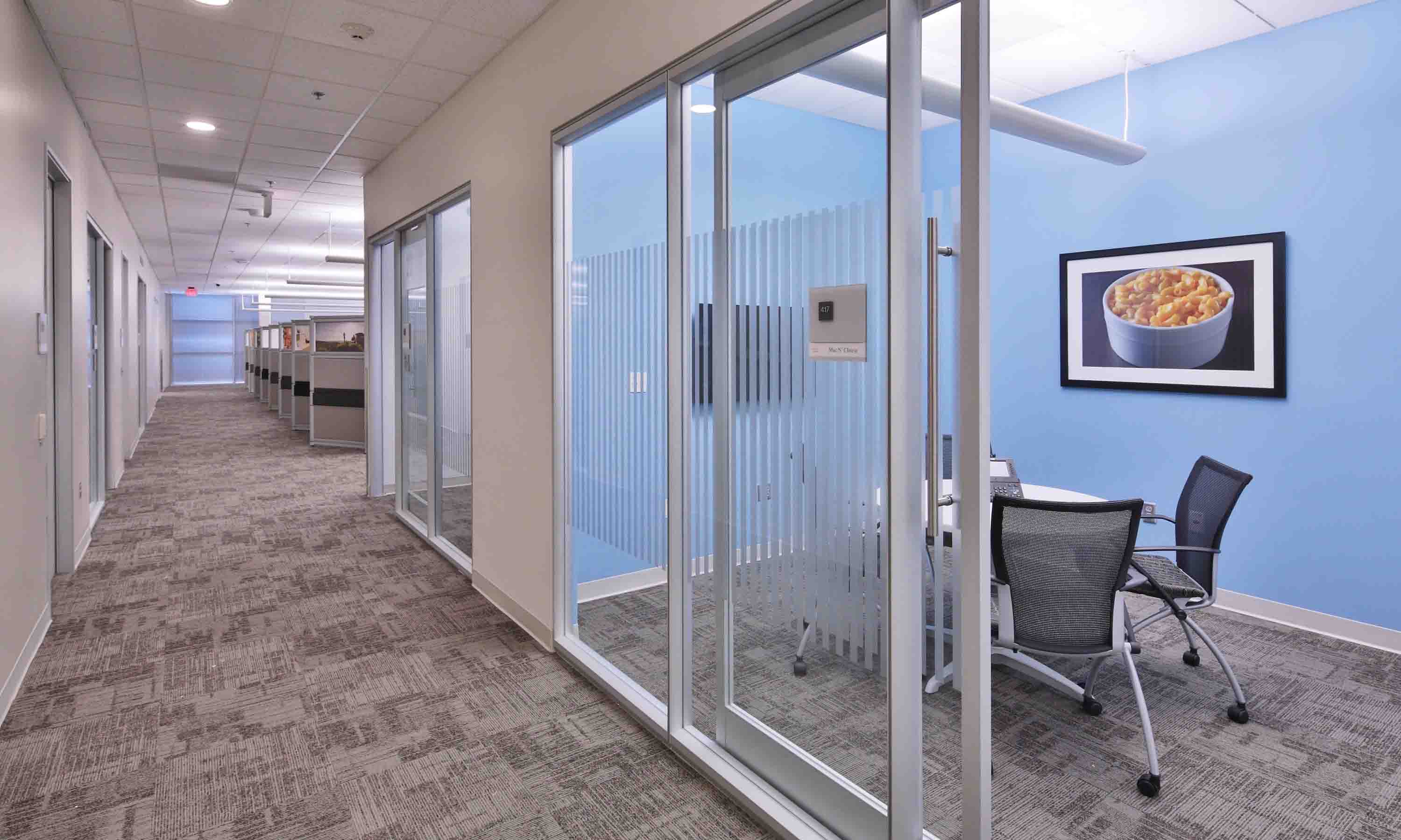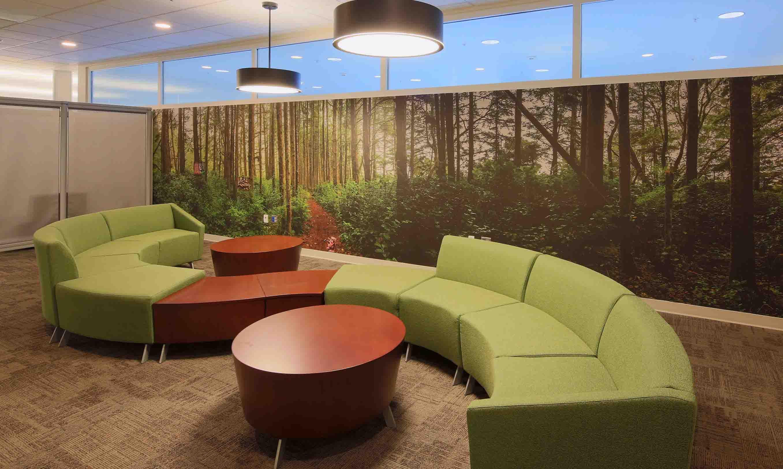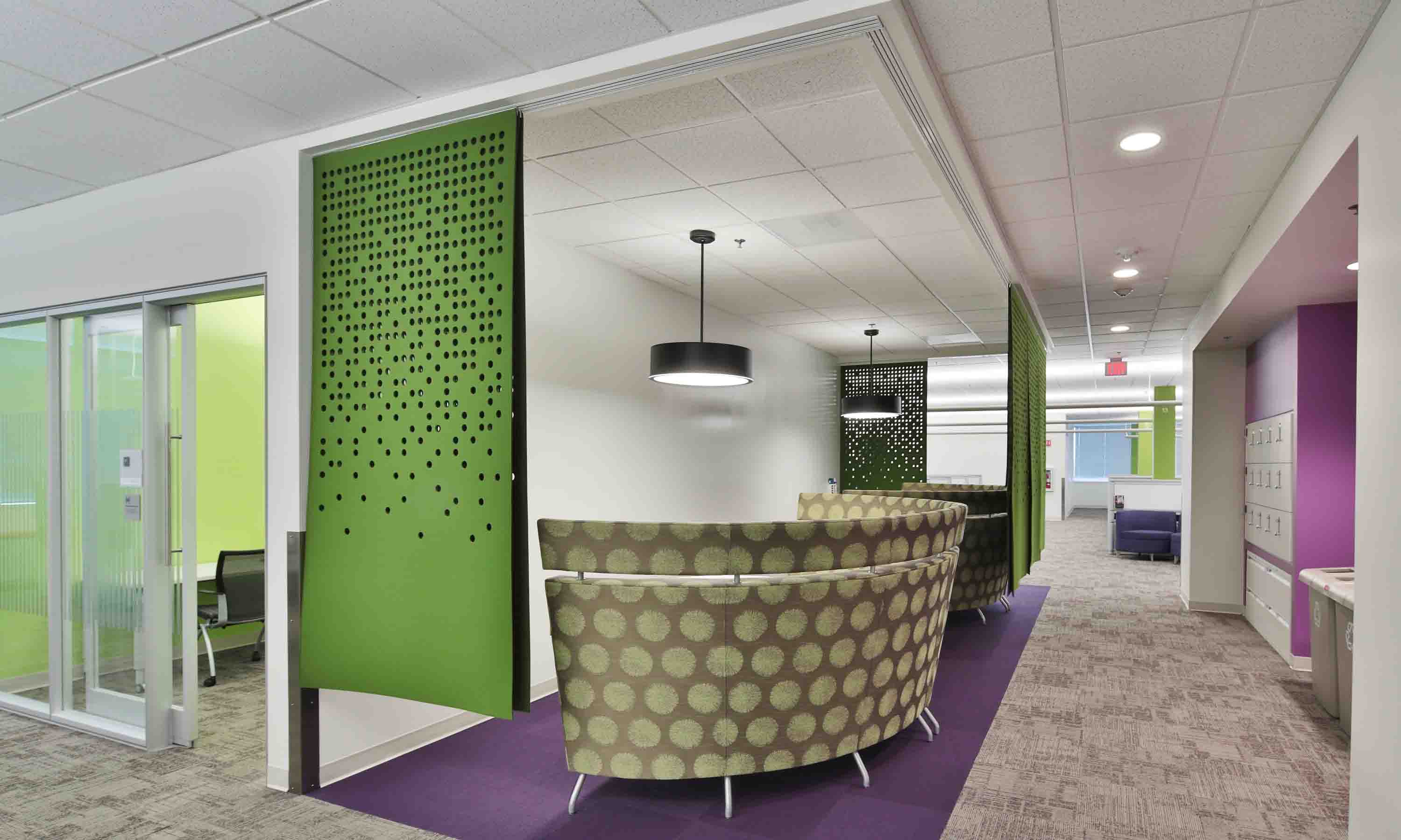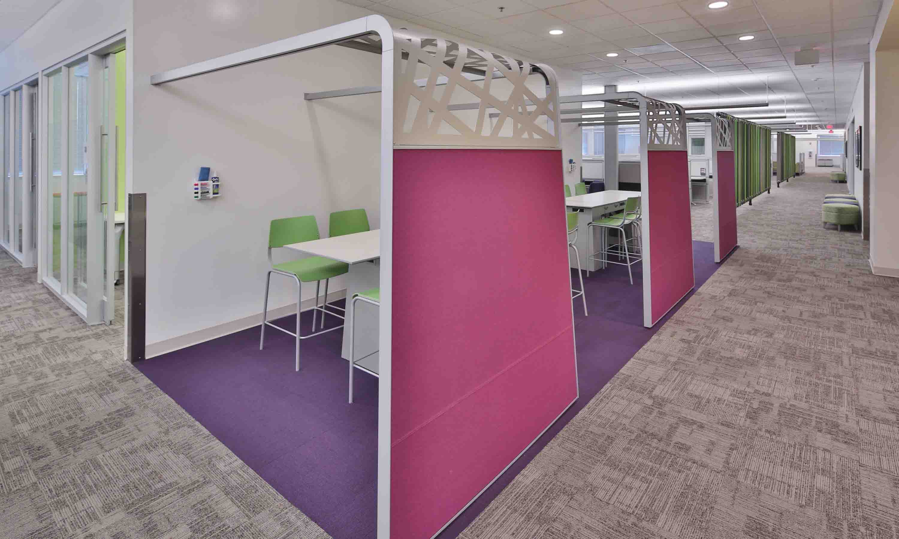 The three Building 11 Creativity Zones are “Golf Green,” “First Class Flight” movie room and “The Cabana,” a quiet room, with their intent being space for quiet time/relaxation and/or spontaneous collaboration.