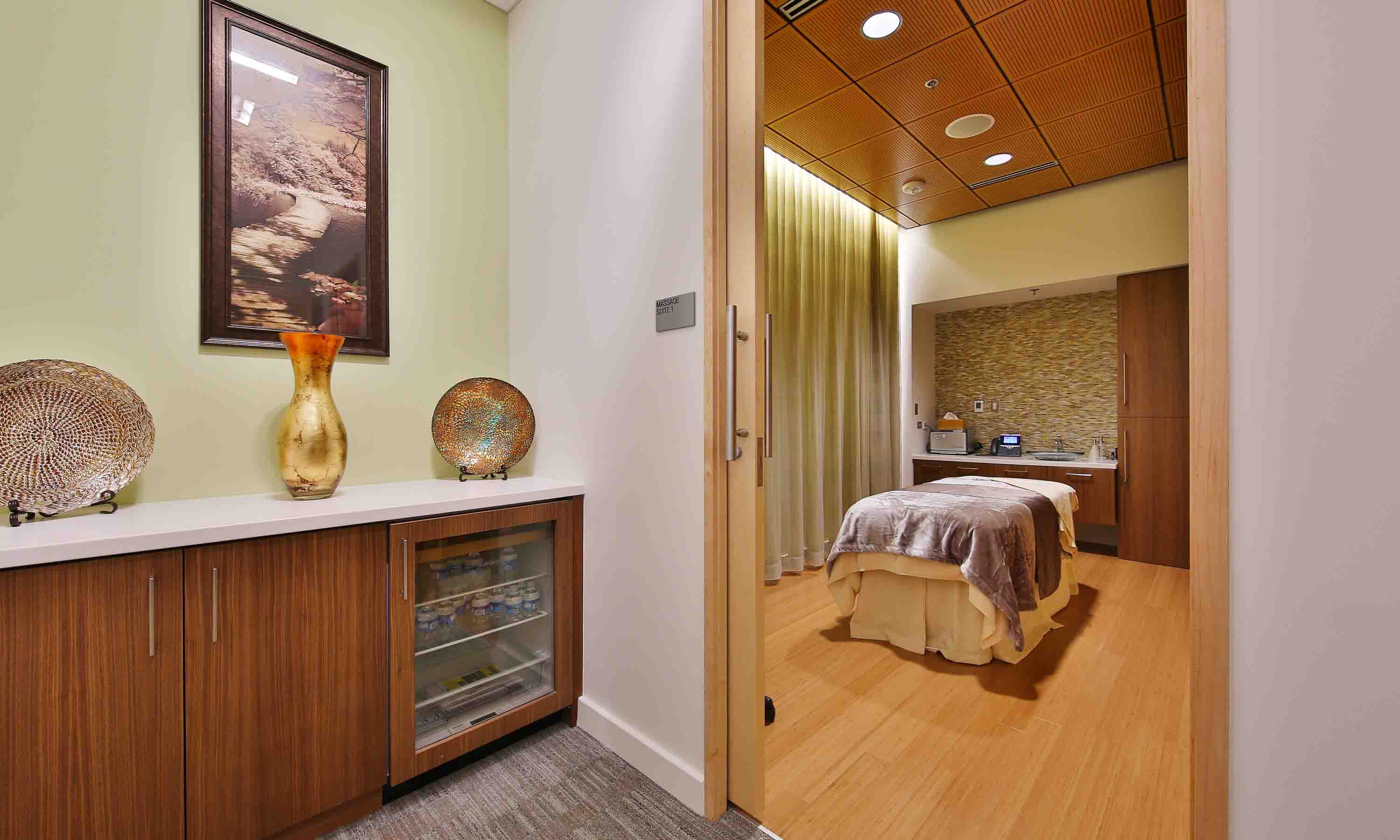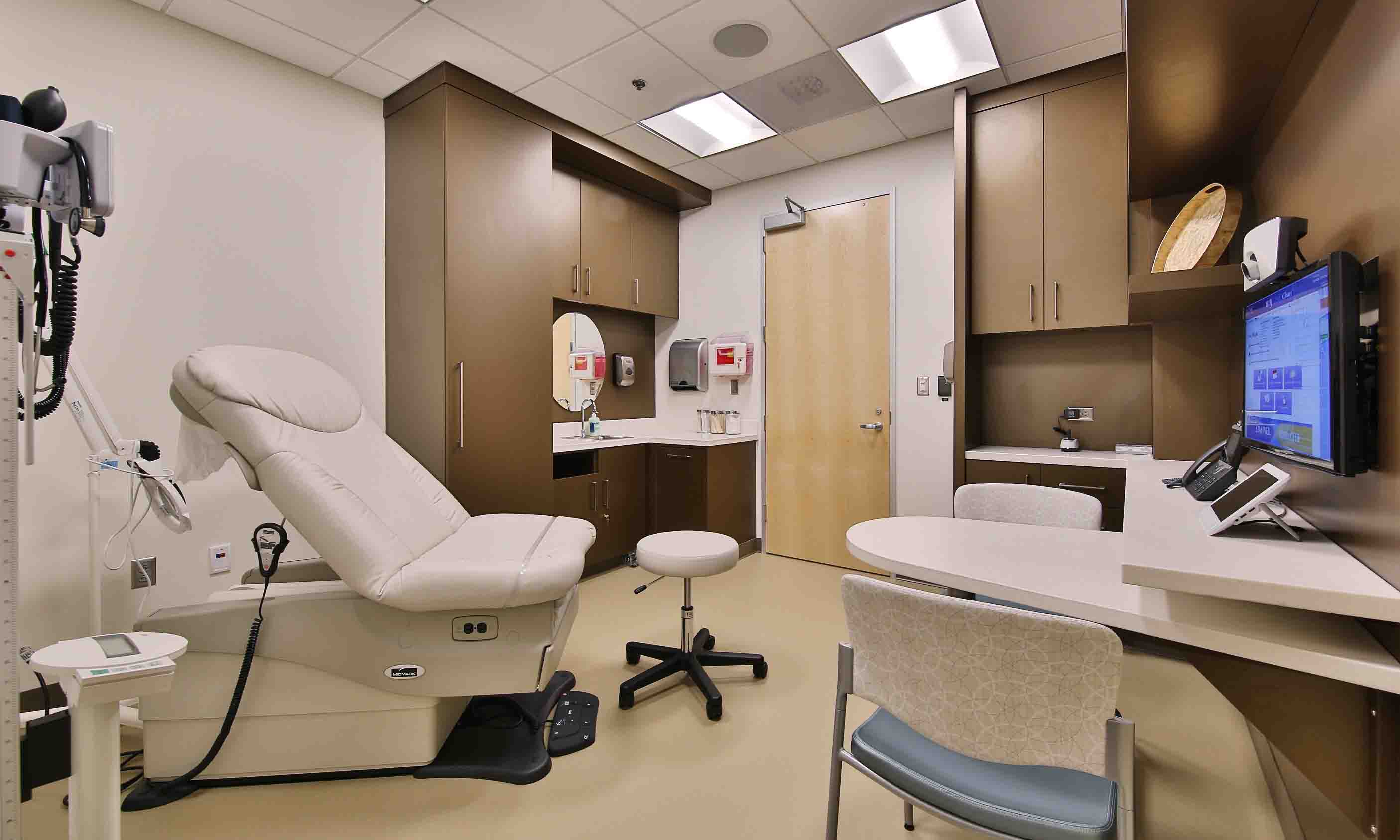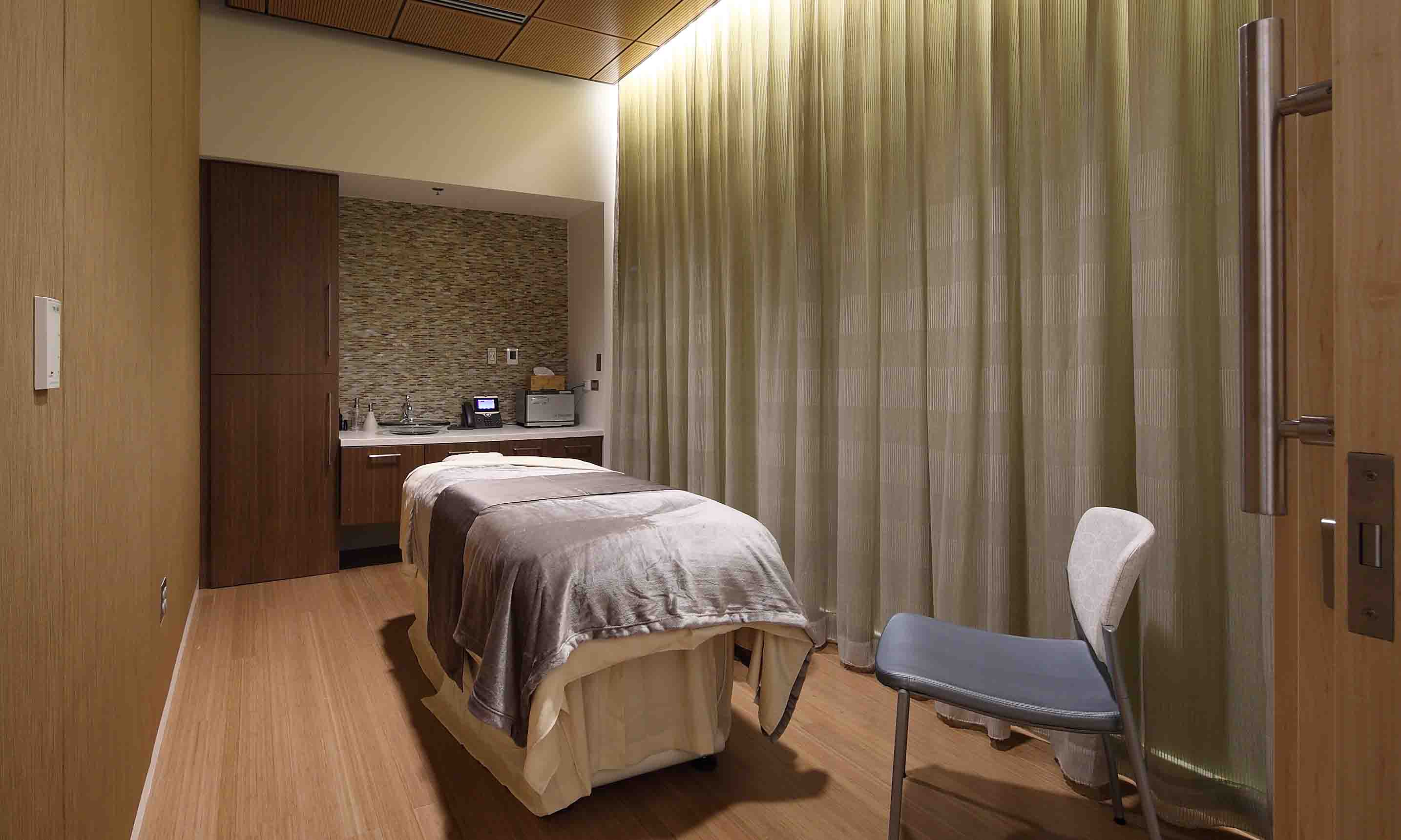 The spa-like center is equipped with Cisco’s 2-way video monitors for remote consultations. It features a Zen Suite for massages, acupuncture, and chiropractic services; and has an on-site optician and an optometrist. Medical exam rooms, a phlebotomy room, labs, prep, physical therapy treatment room and support, and related office/support and storage are included.