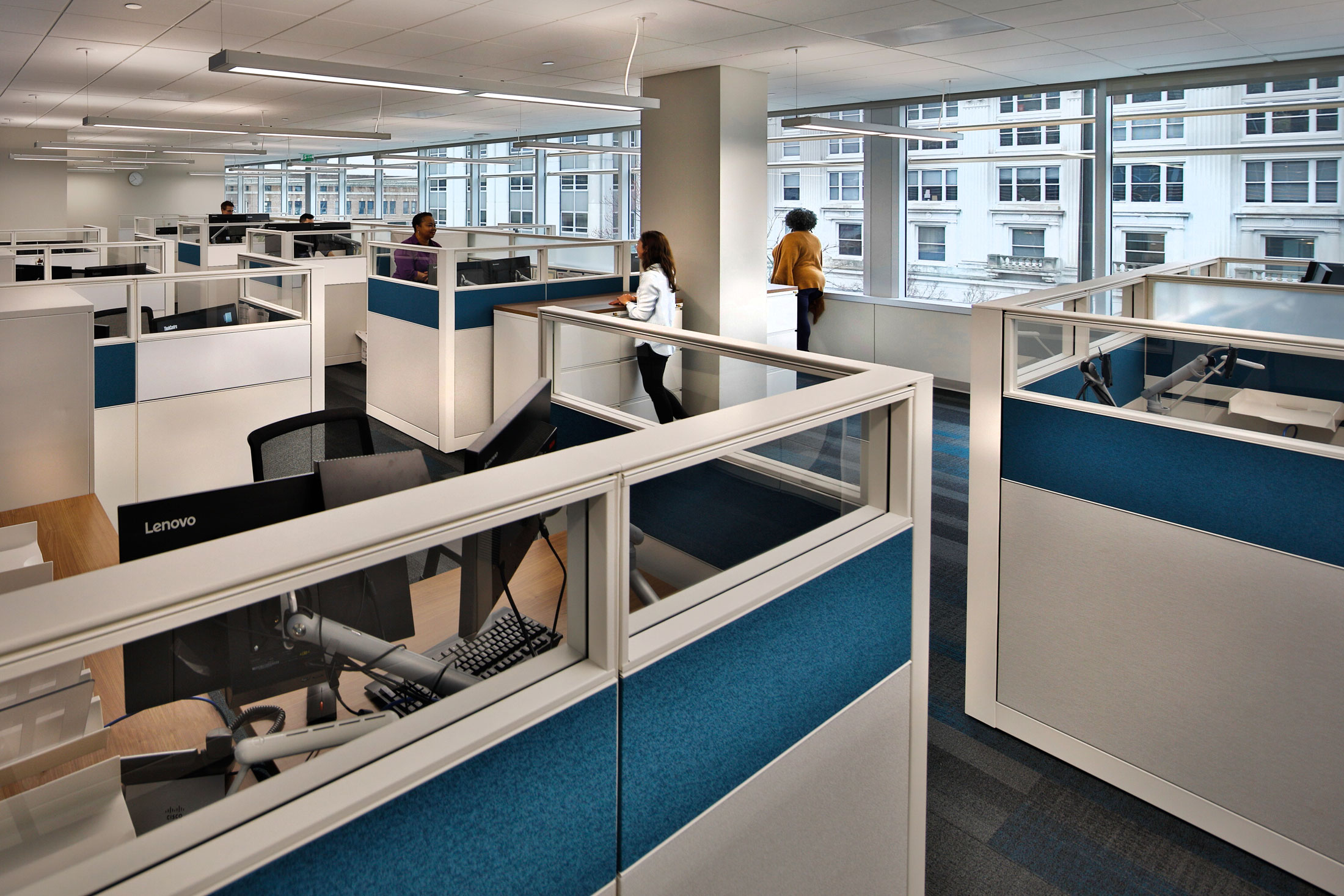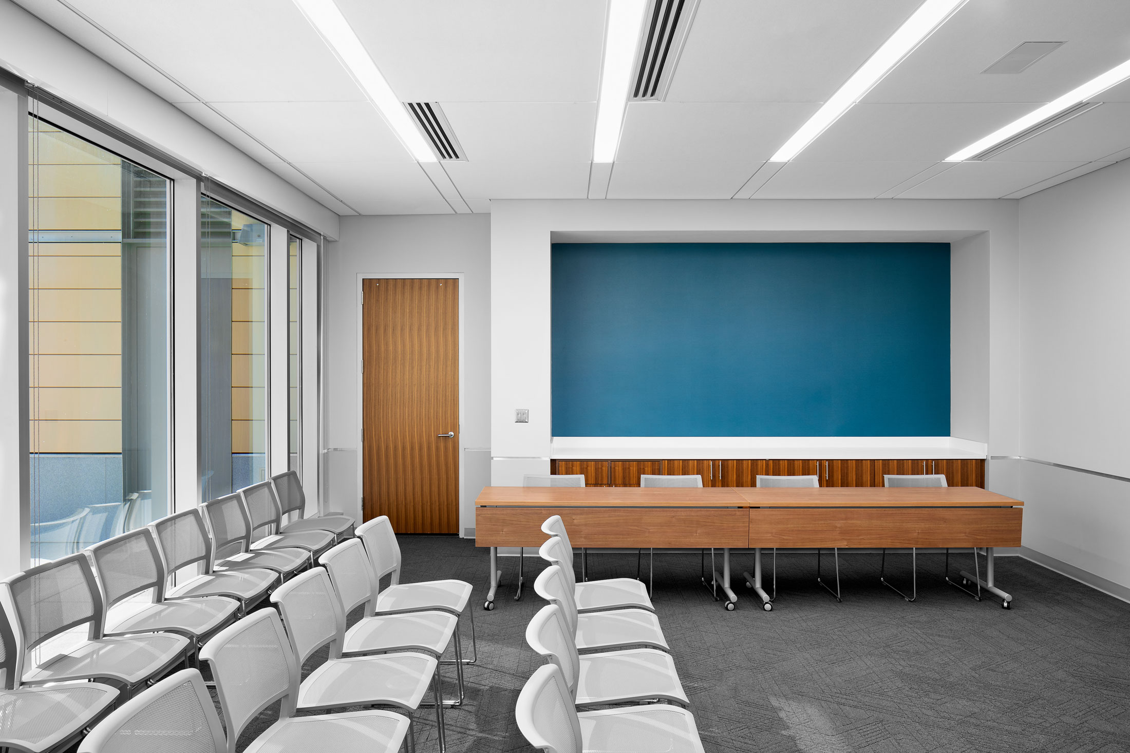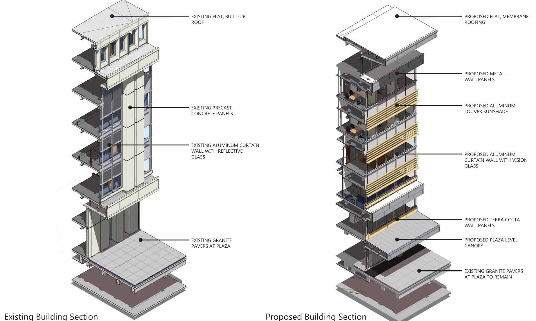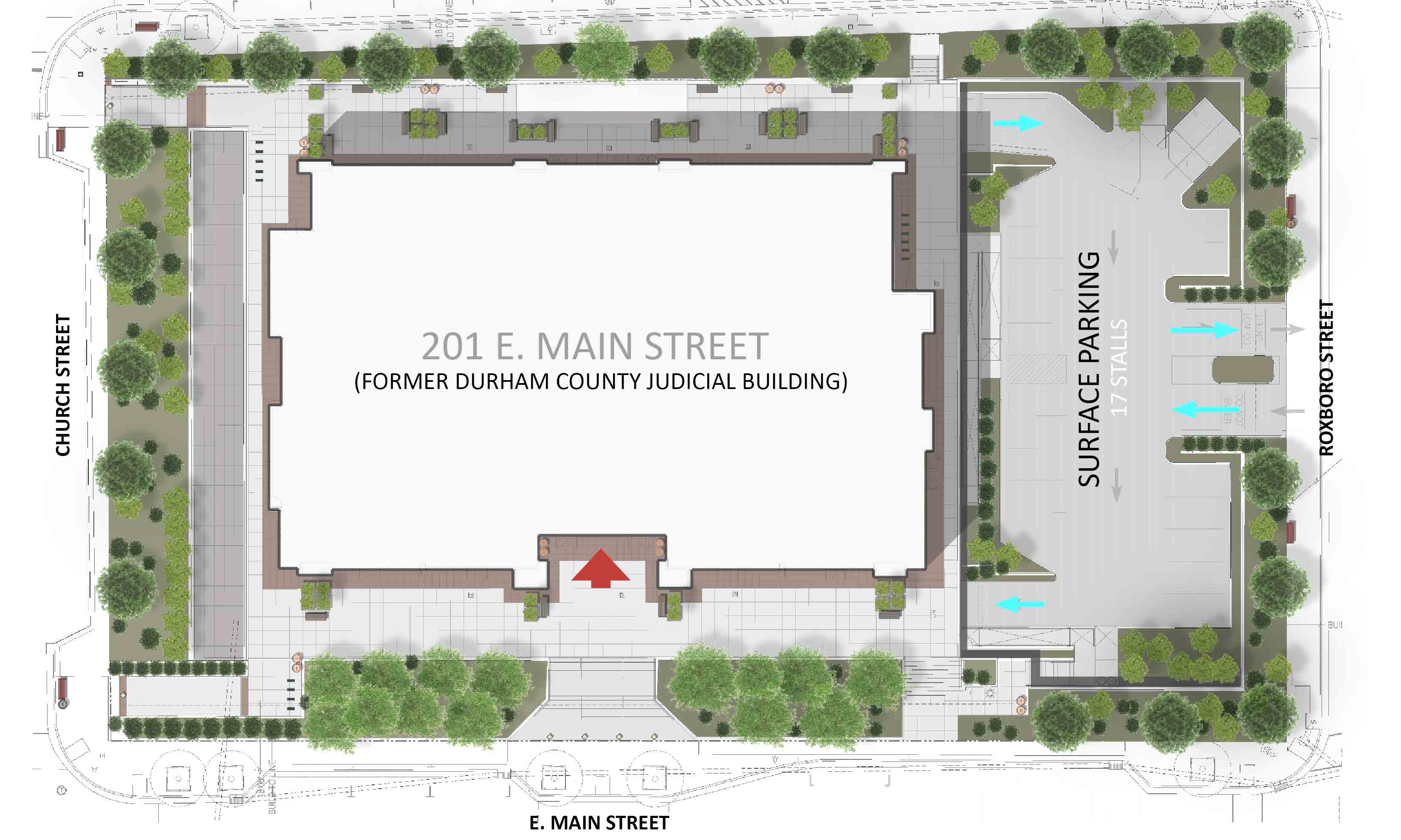 Prior to this renovation project, O’Brien Atkins developed a Facility Master Plan in 2000 which identified County space needs and improvements with a 20-year outlook. Part of that report addressed Durham County’s justice sector. After the new Courthouse (designed by O’Brien Atkins) opened in 2013, the vacated Judicial Building (201 E. Main Street), a 1978 facility which had had only minor renovation since construction, needed to be repurposed, as suggested in the Master Plan. O’Brien Atkins was selected for this project, and, in addition to conducting an existing conditions assessment, prepared an extensive Space Program to identify which County departments would best occupy the newly renovated building. Design objectives include improving the pedestrian and urban scale of the building, activating the first floor level with retail and community meeting spaces to enliven East Main Street, and activating the Plaza Level with landscape and hardscape improvements. Its energy performance design supports Durham County’s High-Performance Building Policy. The former judicial building is now rebranded as the County Administration II Building and provides office, meeting and amenity spaces in line with current workplace strategies. The exterior has been completely reclad and this renovated and rebranded facility now serves as the new anchor for the Durham County Administration node in Downtown.