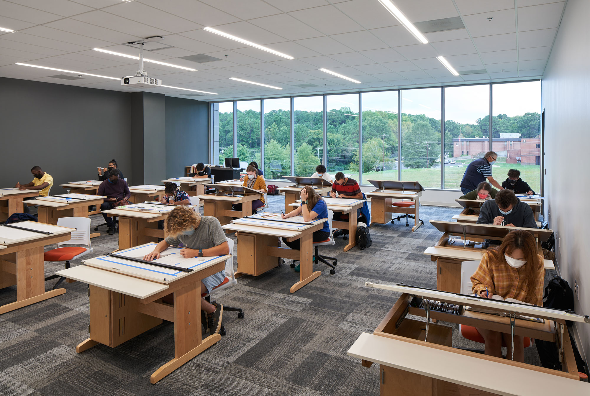 The Durham Tech project began as a renovation of the aged Newton Building, which houses vocational programs. As space programming and design progressed, it was determined that the College’s needs would be best addressed with a renovation of the existing Newton Building and the design/construction of a new applied technologies building.
