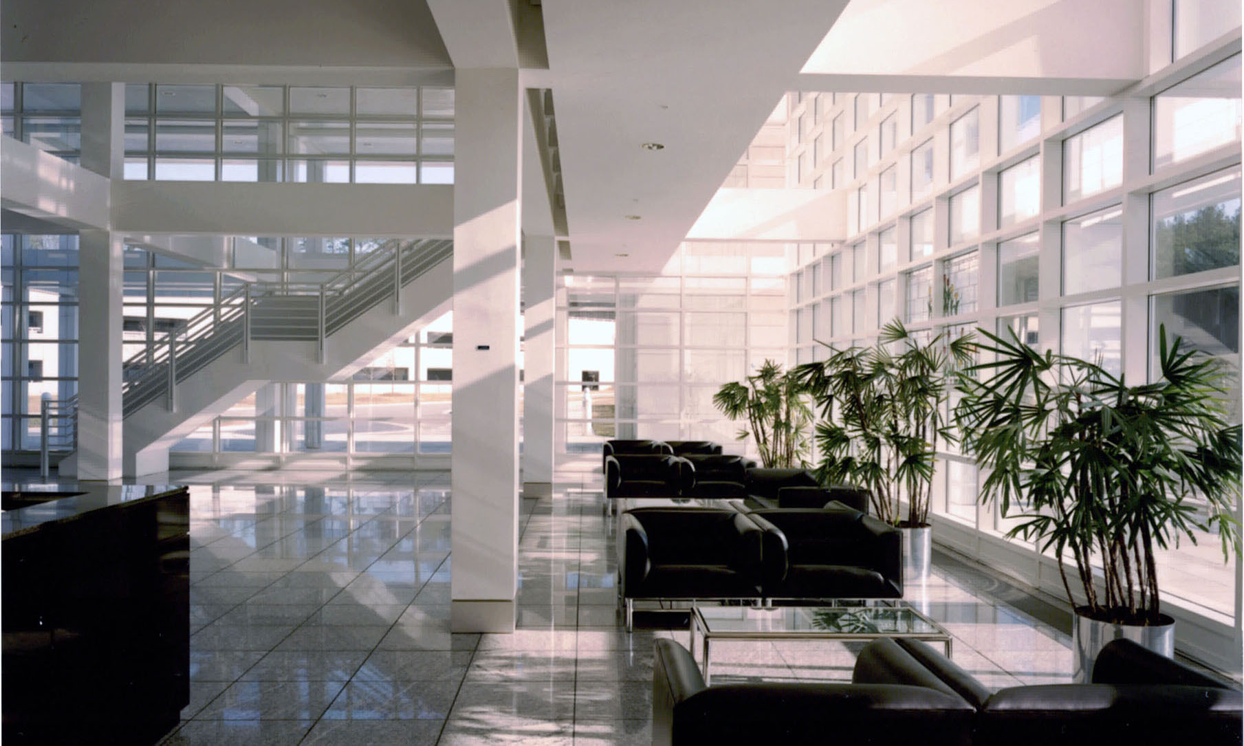 GSK sought to provide office facilities for the company’s marketing group, while at the same time creating a signature building on a prominent site in the Research Triangle Park. This major addition was designed to screen the existing building and to relate to the nearby main building designed by Paul Rudolph. The facility includes offices for marketing administration, marketing financial services, and communication services. An associated new parking garage provides space for approximately 280 cars.