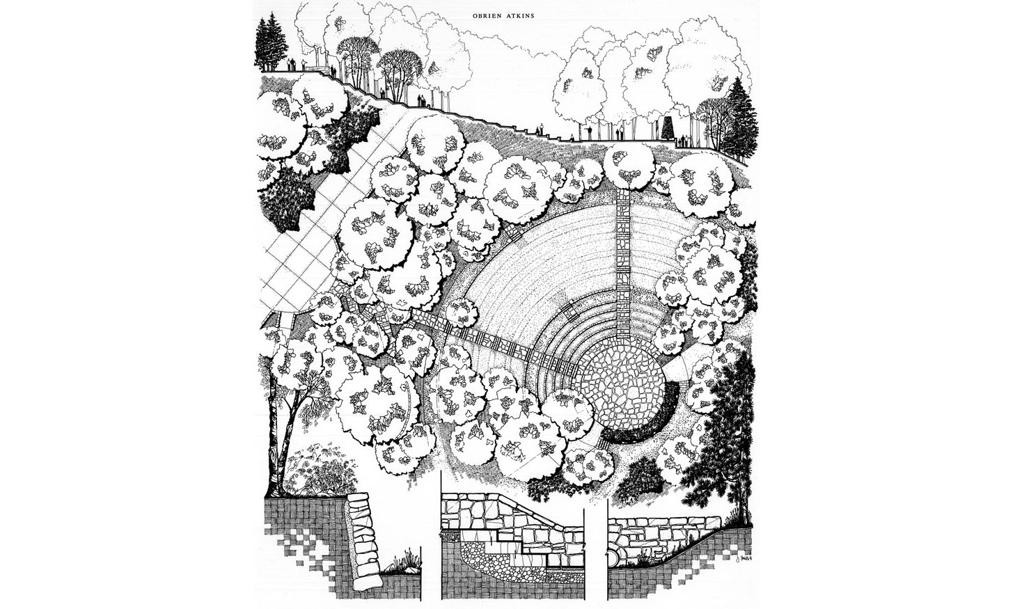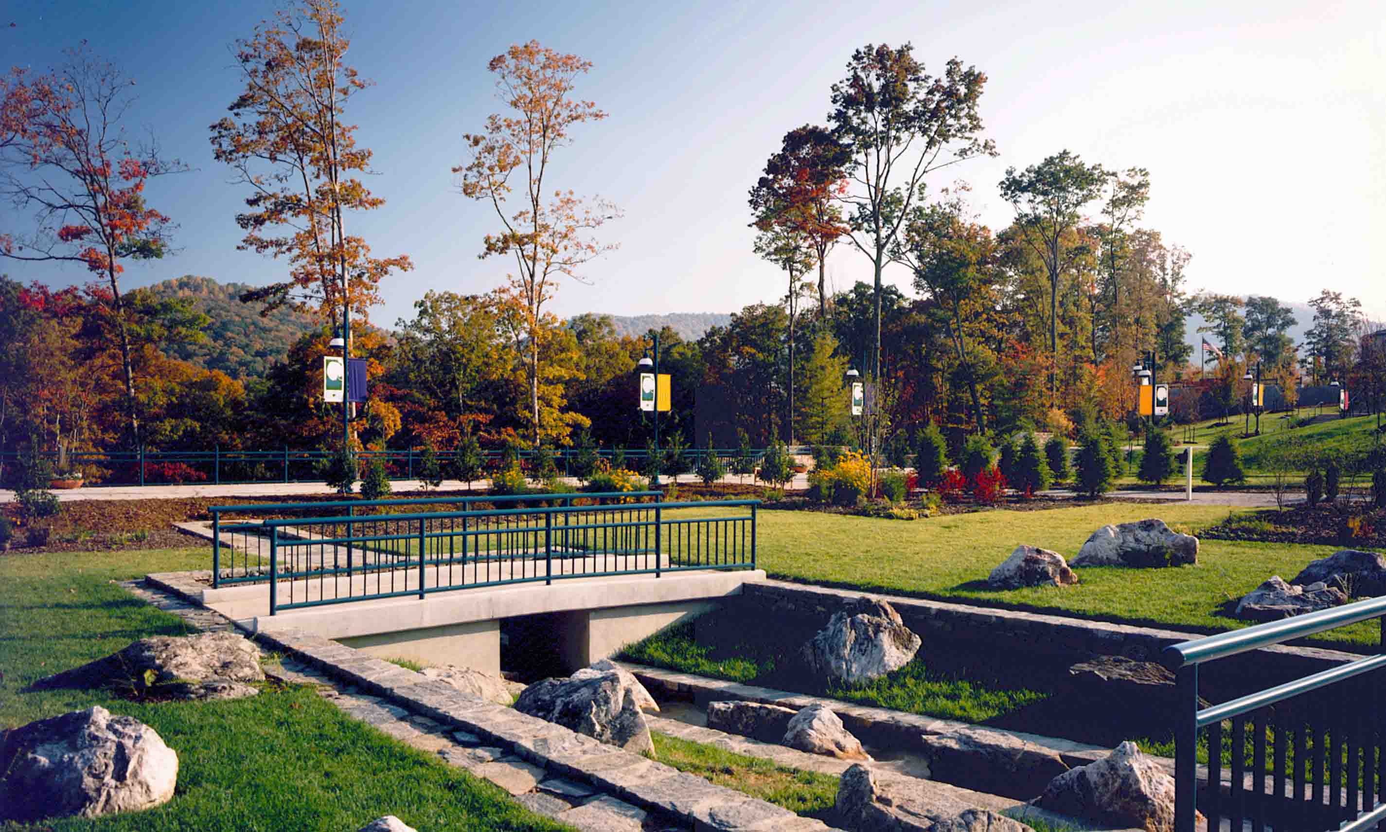 O’Brien Atkins designed eleven individual projects at The Arboretum: a 400-seat outdoor amphitheater, a main entry road and garden, auto/bus parking, pedestrian trails and a series of small garden “rooms,” known as the quilt, stream, spring and outdoor events gardens. These gardens reflect, through the use of a variety of materials, the heritage of the Southern Appalachian region.