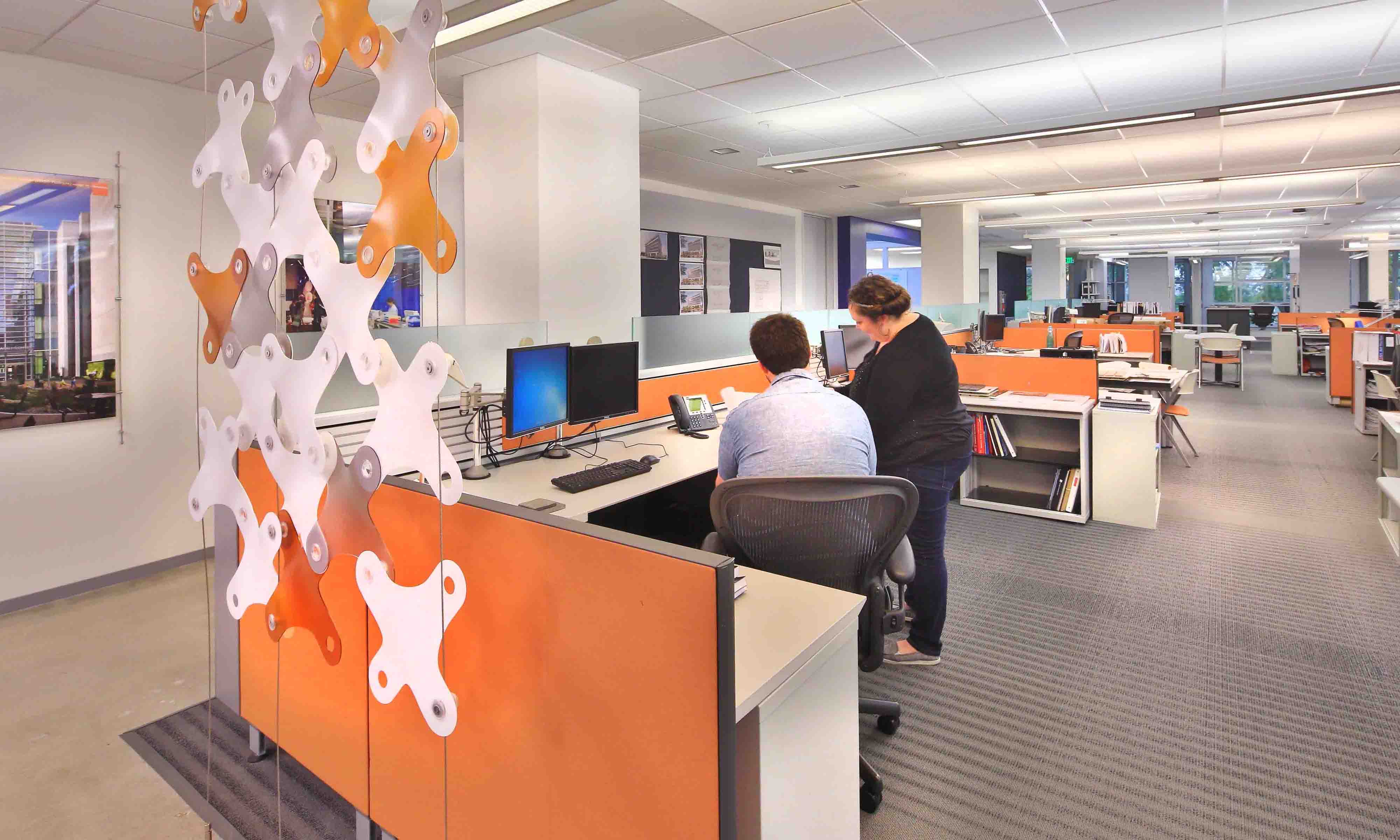 The newly renovated 13,000 sf span the length of the O’Brien Atkins Building, thus providing all employees a view out to the west via floor to ceiling windows.