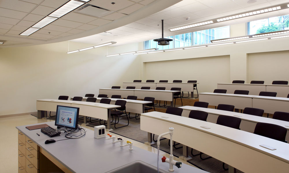O’Brien Atkins designed a new, 85,400 sf science and multimedia facility to replace the aging Robinson Hall. The design scope included site selection analysis for four sites. The 4-story plus penthouse facility contains biology and chemistry teaching and research laboratories; an aquatic viviarium; Nuclear Magnetic Resonance (NMR) spectroscopy lab; shared support space; offices; two classrooms (30 and 50 person) for general campus use and a computer lab, also for general campus use. The Multimedia Department has two multimedia laboratories and a computer laboratory.