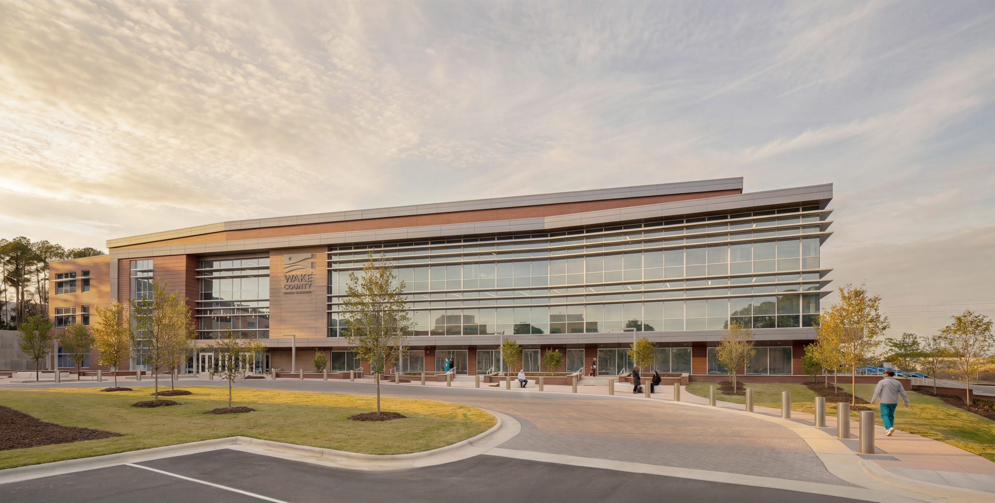 The new Public Health Center and associated 5-level parking deck relocate and consolidate public health services near the County’s human services building. The County’s previous Public Health Center on Sunnybrook Road outlived its usefulness due to population growth, changes in how service is delivered, and an inflexible building layout.